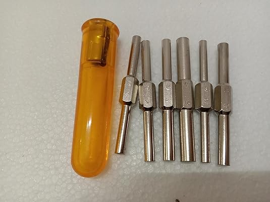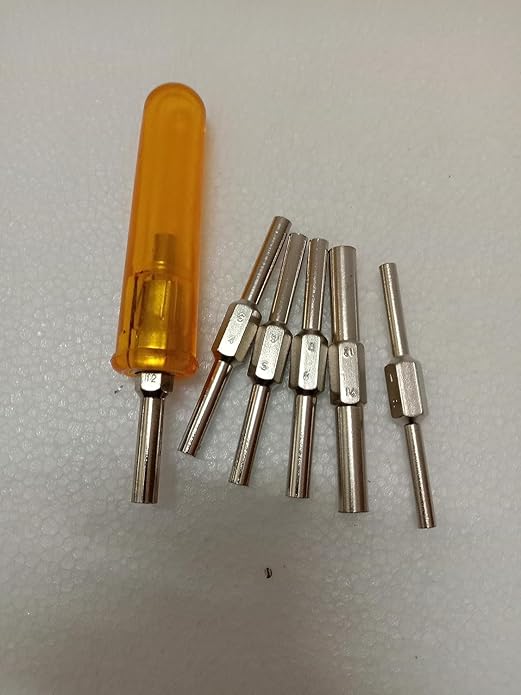 TAURISH Clock Winding & Let Down Release Tool (Sizes 2.5-5.75mm) - Mainspring Let Down Tool with 6 Key Shafts - Steel (Nickel Plated) with Plastic Handle